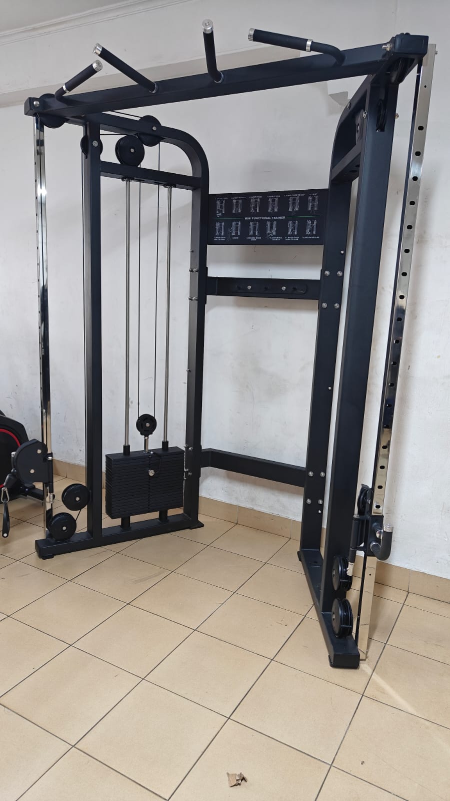 - Dual Adjustable Pulleys: Each side has a pulley column with multiple height settings, allowing upper, mid, and lower cable exercises.